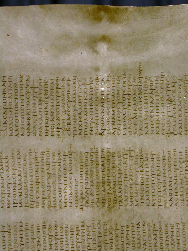 As it survives today, Codex Sinaiticus comprises just over 400 large leaves of prepared animal skin, each of which measures 380mm high by 345mm wide. On these parchment leaves is written around half of the Old Testament and Apocrypha (the Septuagint), the whole of the New Testament, and two early Christian texts not found in modern Bibles. Most of the first part of the manuscript (containing most of the so-called historical books, from Genesis to 1 Chronicles) is now missing and presumed to be lost.