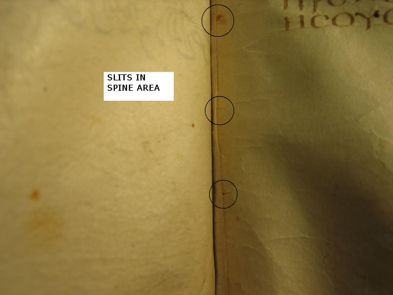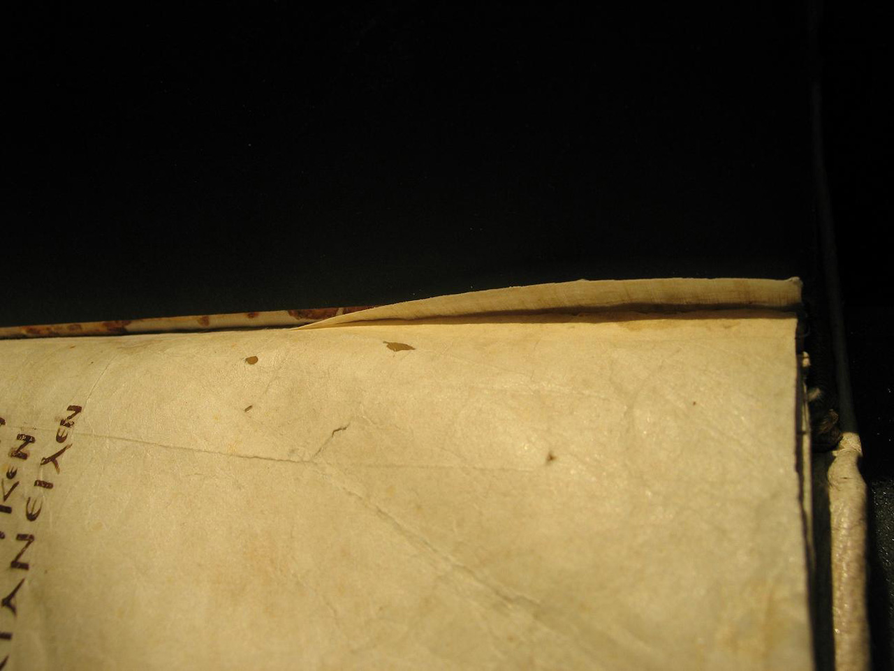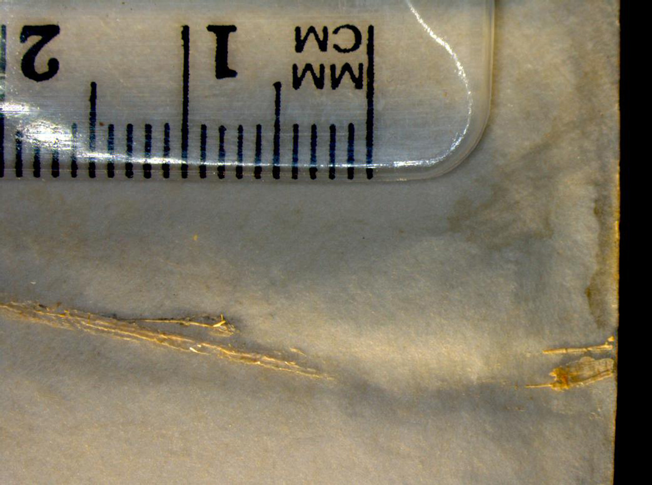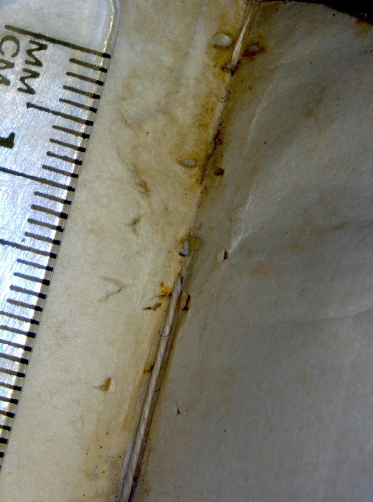 The occasional jagging action of the knives when thinning down the skin could also sometimes leave parallel marks on the parchment. This type