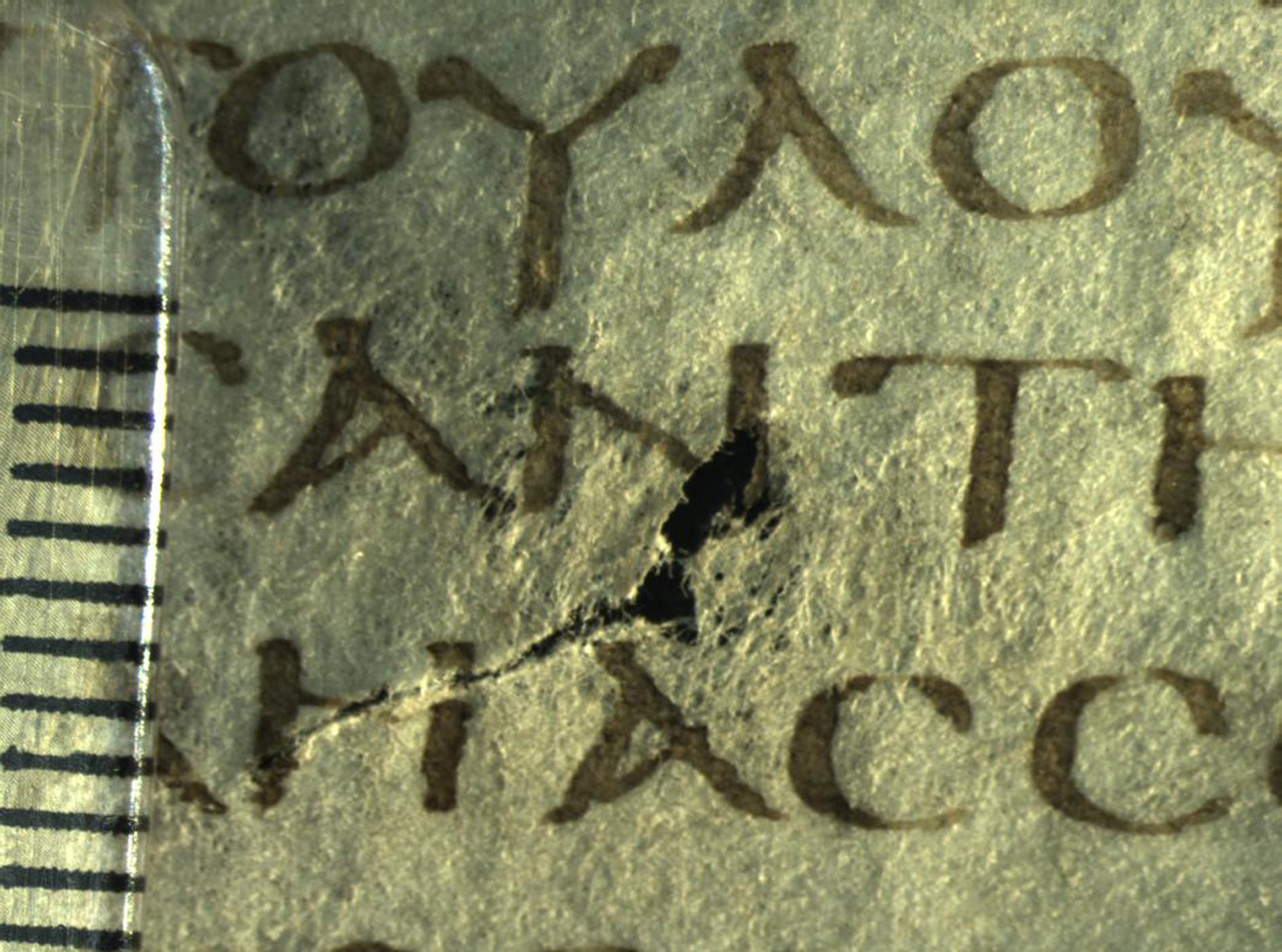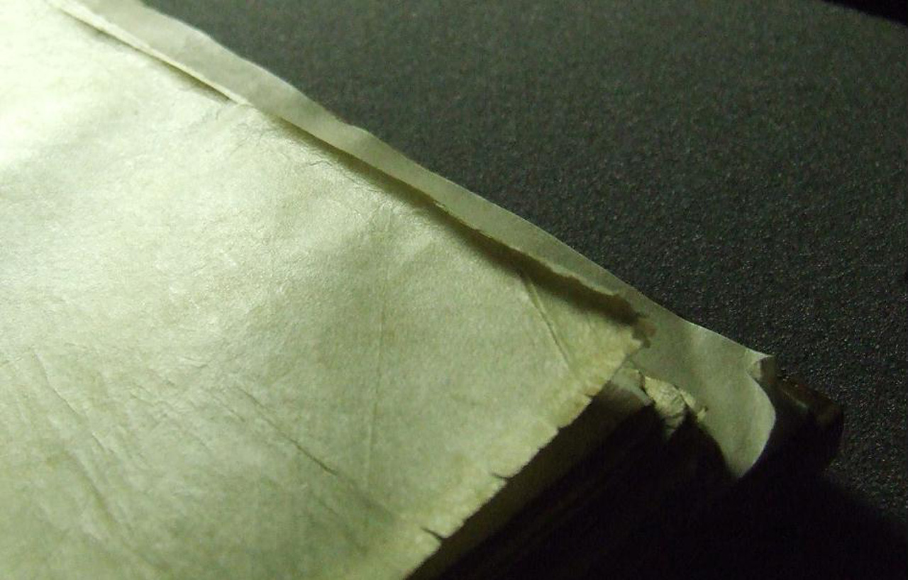 A tear extends from the edge of the leaf with no or minimal loss. A main characteristic of a parchment tear is that the