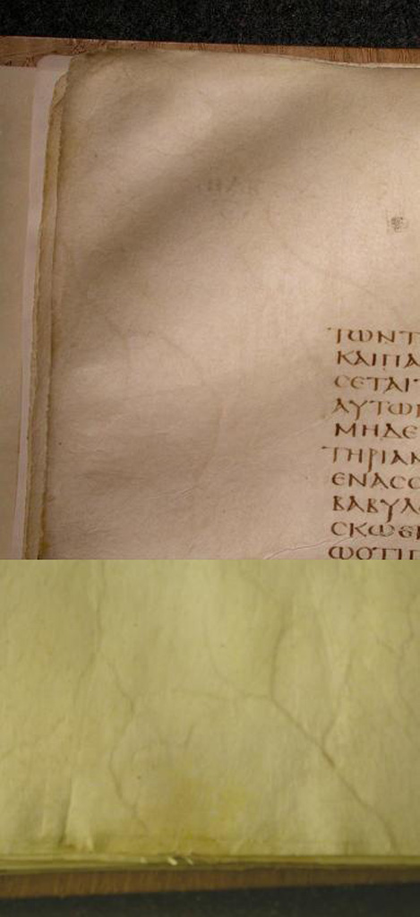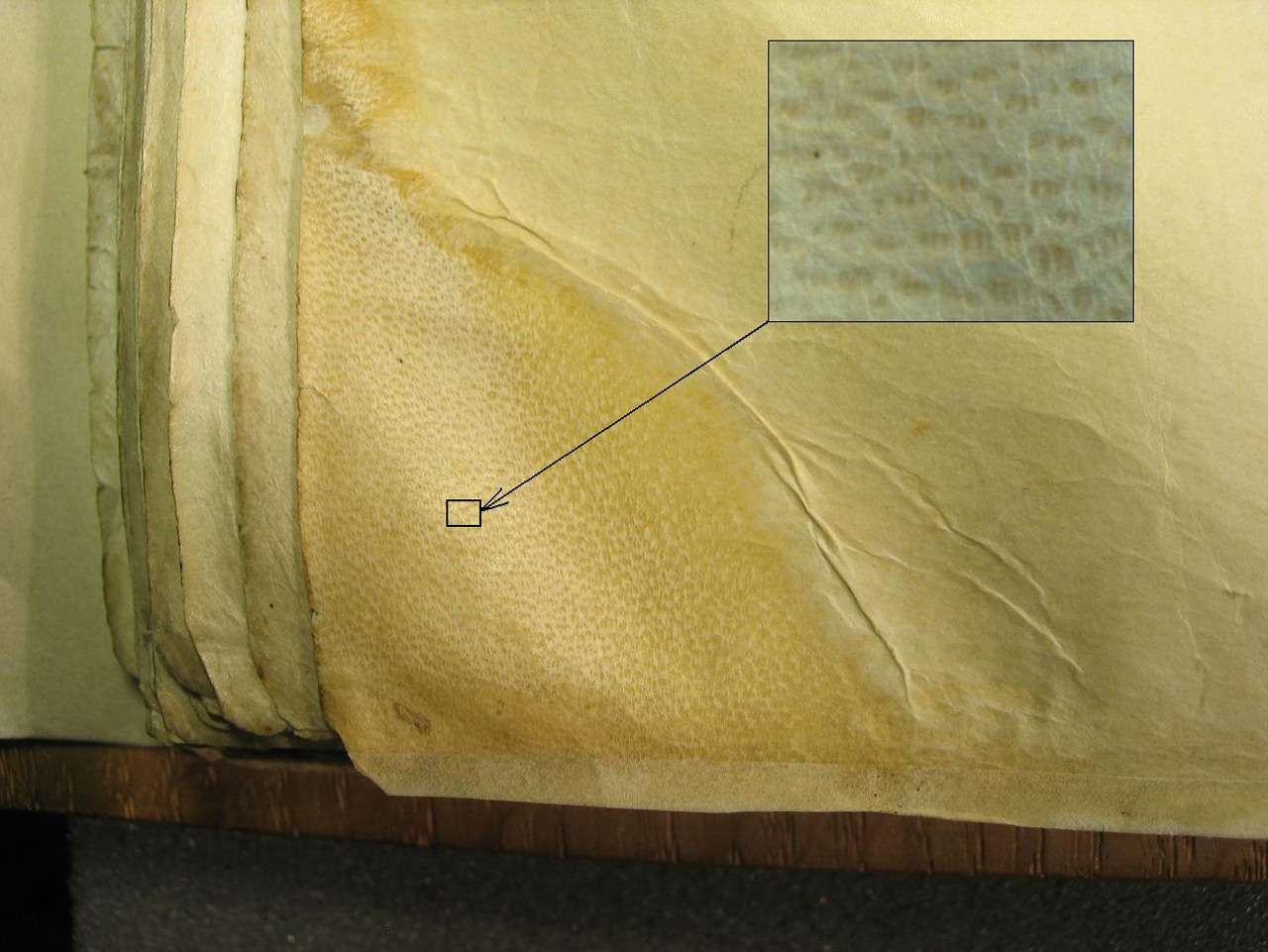 Parchment can sometimes still show evidence of the vein network which will appear of a light colour if the animal has been bled thoroughly or