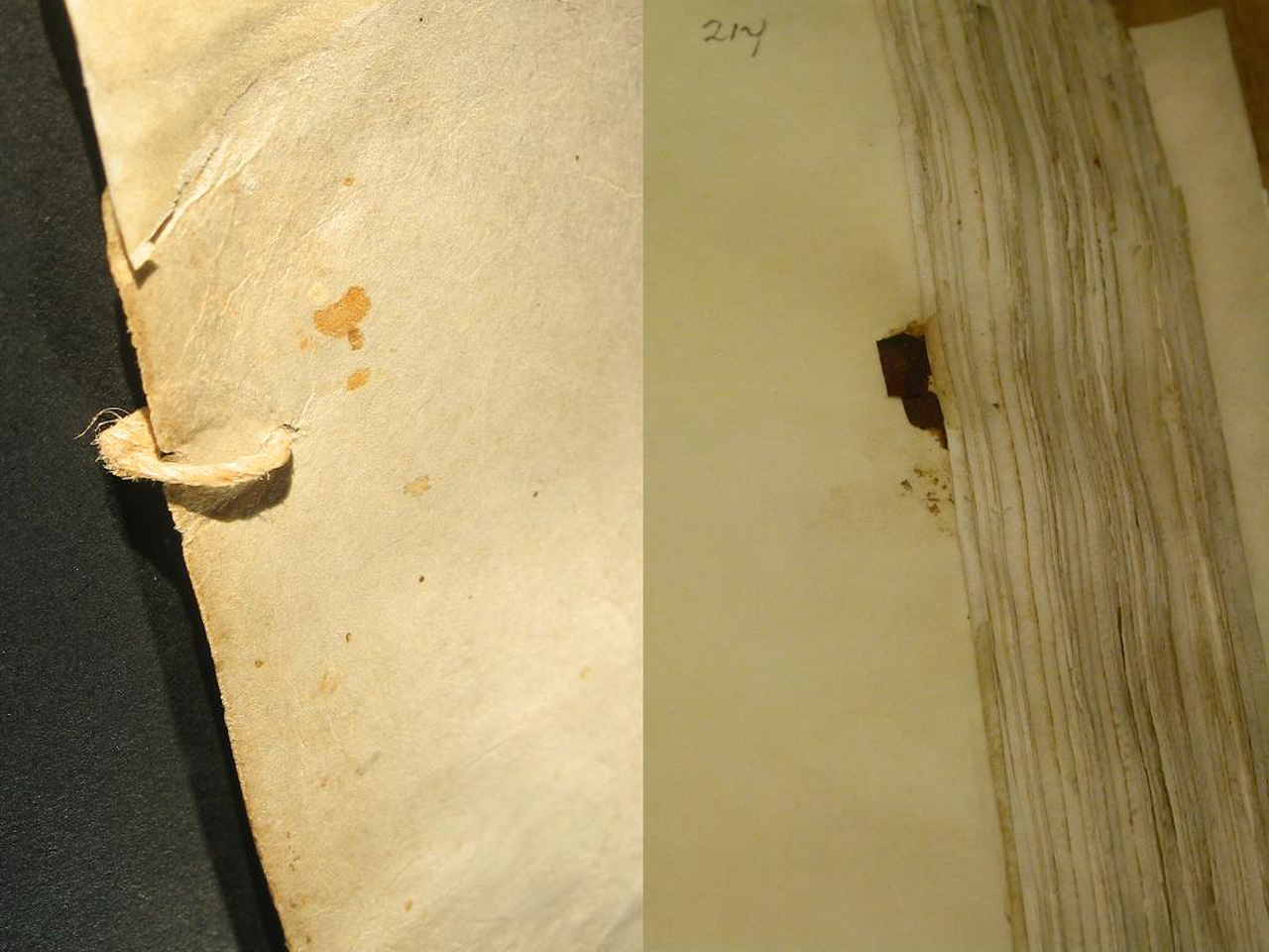 Injuries sustained by animals whilst alive are often still visible on the parchment produced from their skins. They appear as a thinner tissue