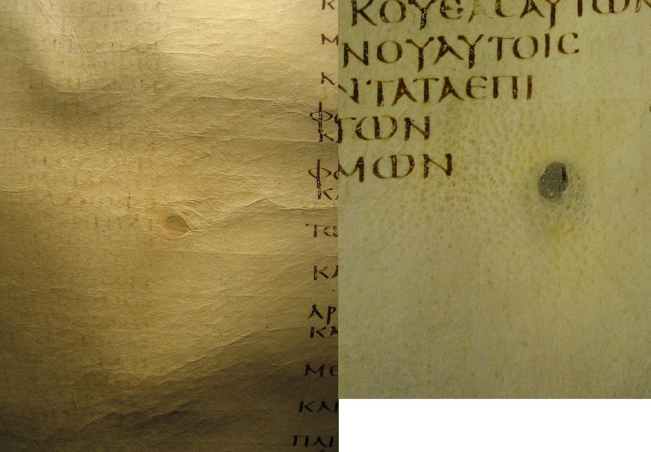 The knives used by parchment makers to de-hair and scrape the stretched skin could leave marks on the parchment. Any minor damage to the skin