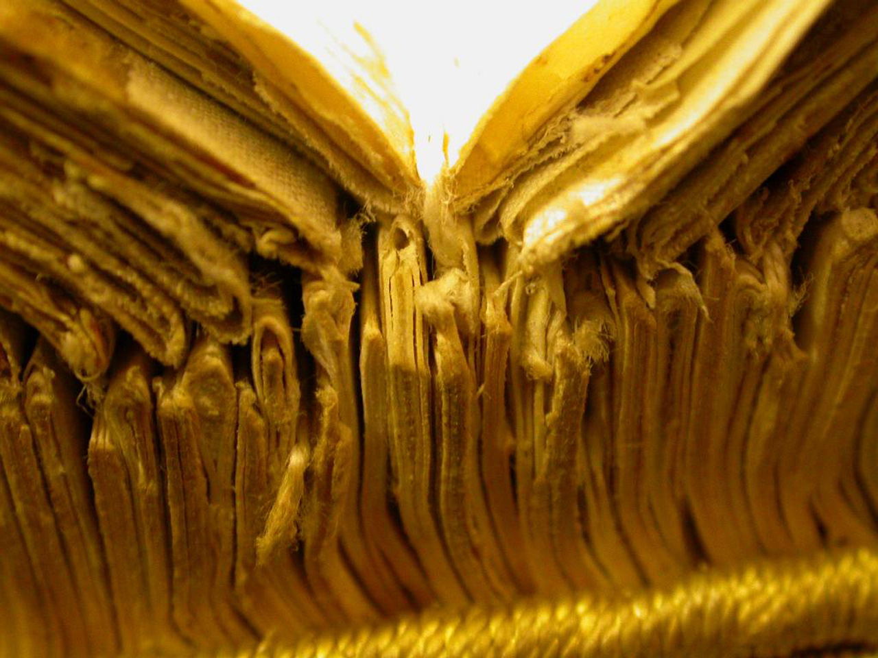 folded piece of material (in this case parchment and paper). The stub guards are then sewn all together and form the text block. The